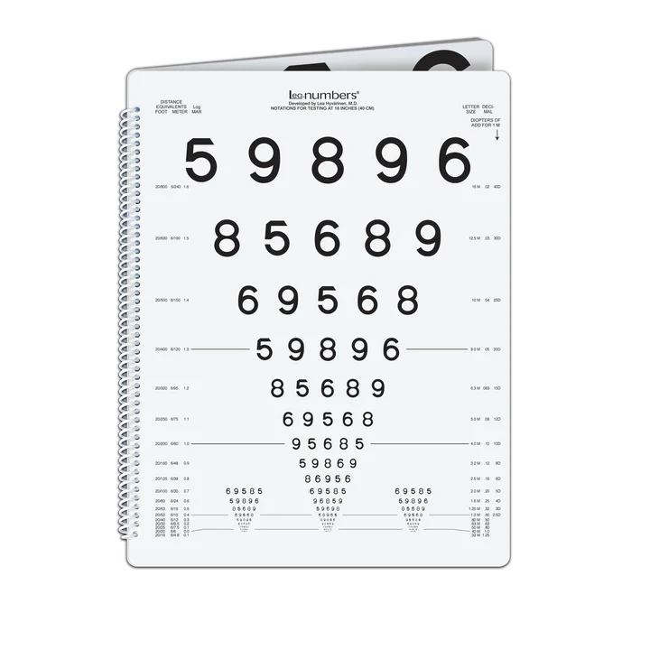 這本帶有LEA NUMBERS的低視力書籍專為測試嚴重視力受損的兒童和成人而設計。這本完整的書包括 10 英尺(3 米)、5 英尺(1.5 米)的測試以及 16 英寸(40 釐米)的近視力測試。距離測試線尺寸範圍從20/1600到20/16等效。近視測試線尺寸範圍從20/800到20/16等效。
